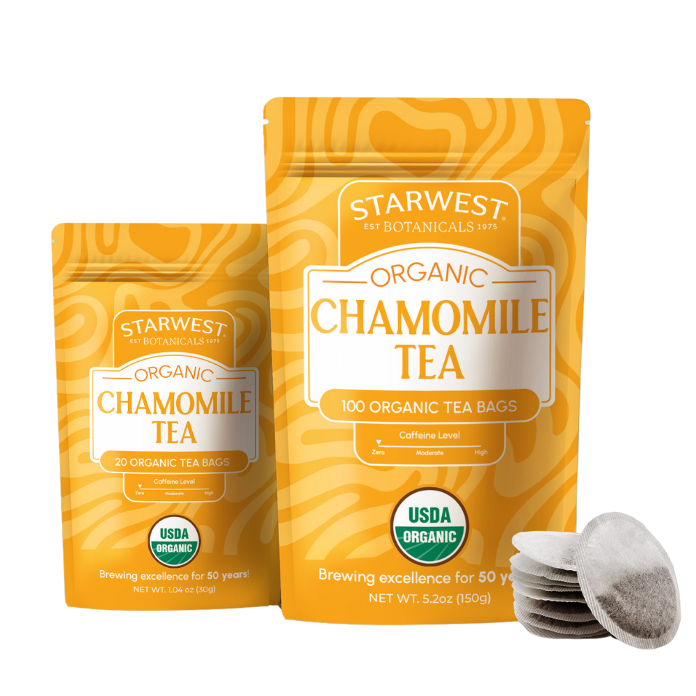 Drift into serenity with Starwest Botanicals' Organic Chamomile Tea. Known for its calming properties, chamomile has been used for centuries to support relaxation and restful sleep. With its gentle, floral aroma and soothing taste, this tea is the ideal companion for quiet moments. Crafted with care, Starwest Botanicals brings you a time-honored Organic Chamomile Tea, made with 50 years of organic expertise and dedication to quality.