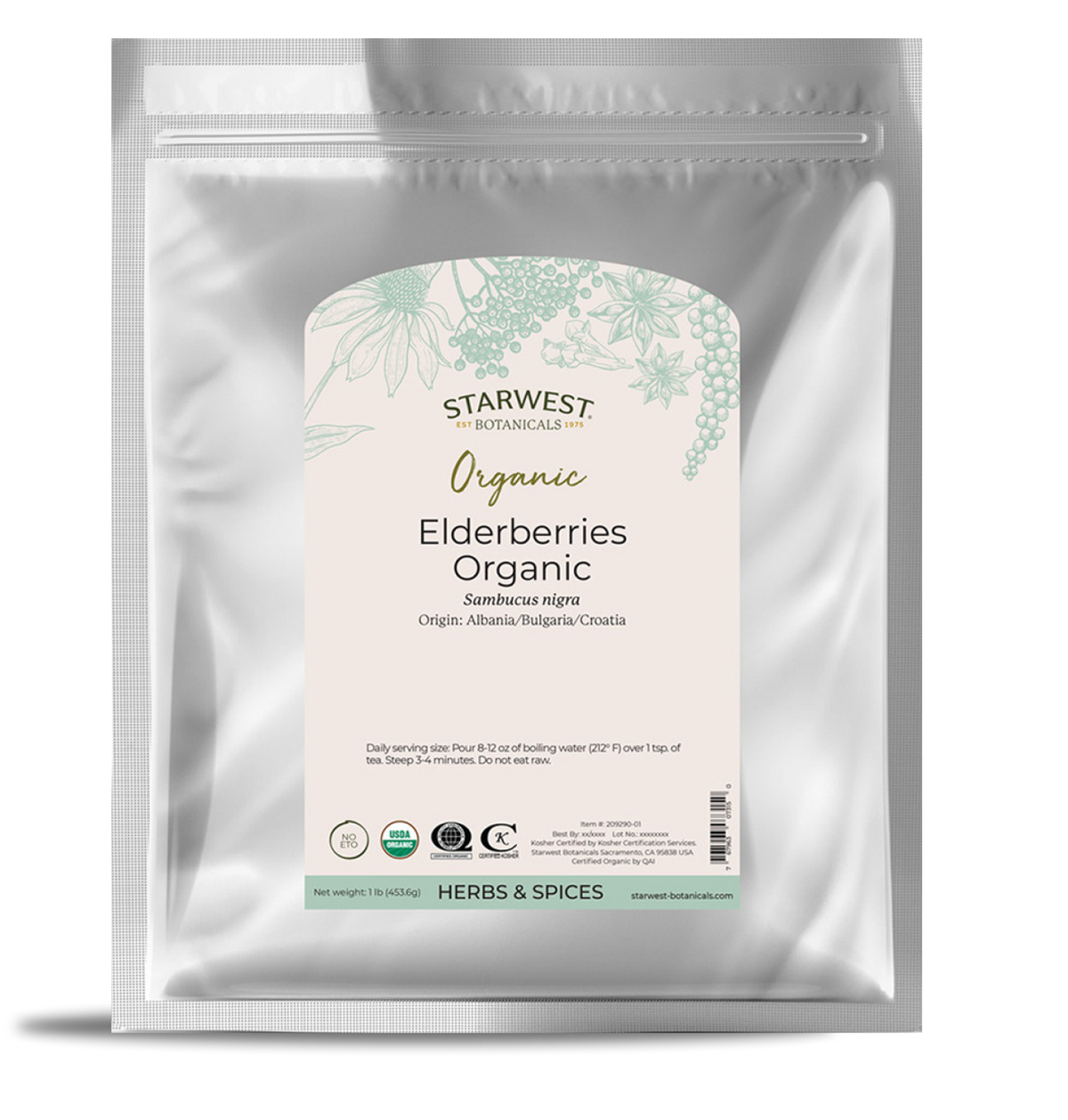 Organic elderberries are small, dark purple-black berries that grow in clusters on the elder shrub. Renowned for their impressive color and unique small size, these berries are a delightful addition to a variety of culinary creations.