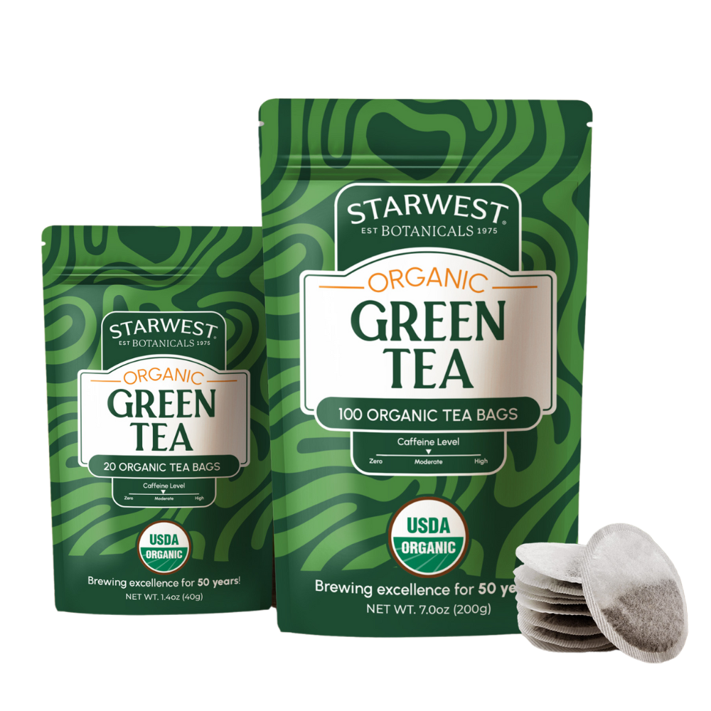 Renew your senses with the crisp, clean taste of Starwest Botanicals' Organic Green Tea. Packed with antioxidants and offering a gentle caffeine boost, green tea is a time-honored beverage for those seeking clarity and vitality. With its delicate flavor and refreshing aroma, each sip connects you to centuries of tea tradition. At Starwest Botanicals, we've been sourcing and crafting organic teas for 50 years, ensuring every cup is filled with purity and excellence.