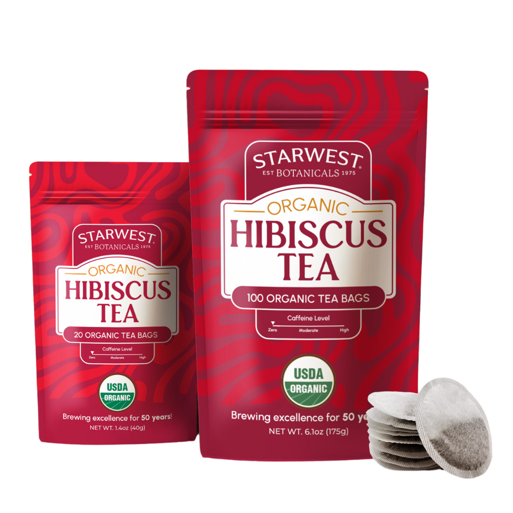 Let the vibrant red hue and bold, tangy flavor of our Organic Hibiscus Tea Bags rejuvenate your senses. Known for its rich antioxidants, hibiscus offers a refreshing and tart experience, making it the ideal tea for supporting hydration and radiance. Whether enjoyed hot or cold, this caffeine-free tea is both invigorating and soothing. Starwest Botanicals, with 50 years of expertise, brings you organic hibiscus tea crafted with care and integrity.