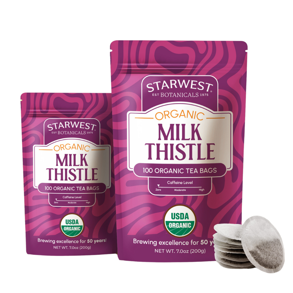 Embrace the nurturing qualities of Starwest Botanicals' Organic Milk Thistle Tea. Long valued for its wellness support, milk thistle seed offers a gentle, earthy flavor. Adding this caffeine-free tea to your daily wellness ritual supports balance and harmony in the body and mind. With over 50 years of commitment to quality, Starwest Botanicals brings you milk thistle tea that reflects purity and care, offering you a mindful moment in every cup.