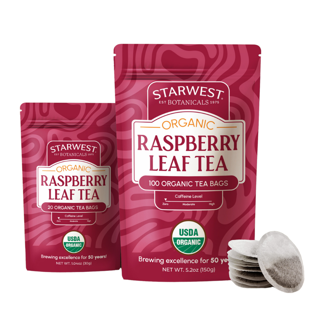 Traditionally used to support women's health, Starwest Botanicals Organic Raspberry Leaf Tea Bags offer a naturally caffeine-free and nourishing herbal tea. With a mild, slightly sweet flavor, raspberry leaf is cherished for its ability to support women's health and overall wellness. Whether enjoyed during pregnancy or as part of your daily routine, Raspberry Leaf tea provides comfort and balance. Starwest Botanicals has been dedicated to organic excellence for 50 years, and our Raspberry Leaf Tea reflects our commitment to wellness and purity.