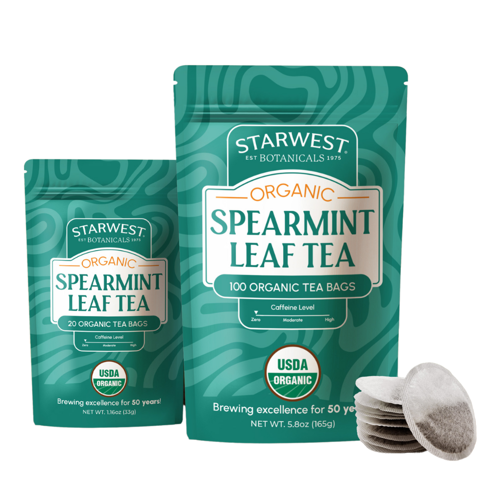 Soothe your mind and body with the cooling, refreshing taste of Starwest Botanicals' Organic Spearmint Leaf Tea. Known for its smooth, sweet flavor and calming properties, spearmint tea provides relaxation in a cup any time of day. Whether you're seeking relief after a long day or simply want to enjoy its crisp taste, this caffeine-free tea is both refreshing and soothing. With 50 years of organic expertise, Starwest Botanicals ensures that every cup delivers the finest organic spearmint flavor.